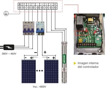 - Apto para funcionar con corriente continua (DC) paneles solares y corriente alterna (AC) 380 v.